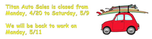 Due to the high cost of repairing today’s vehicles, it is important to buy your next car with an extended service warranty. Titan Auto Sales offers a complete line of warranty options to meet the specific needs of your pre-owned vehicle. Please see Warranty for more details.
